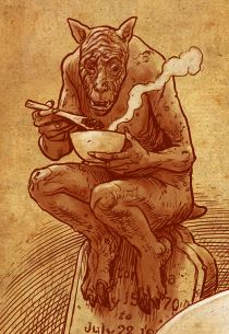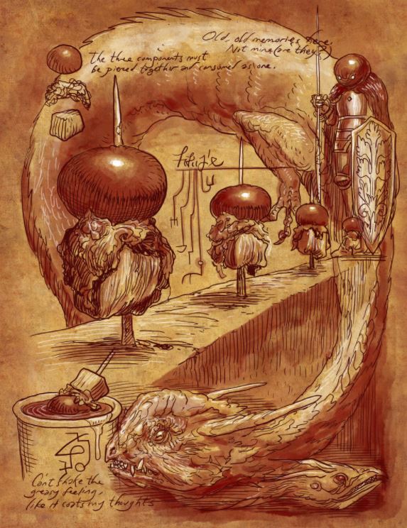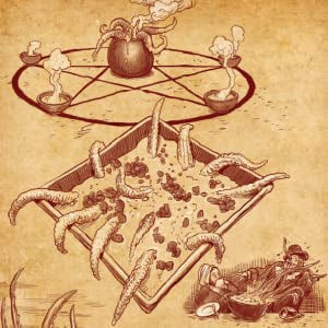 Like H. P. Lovecraft’s Necronomicon, the legendary and forbidden book of the dead that is "alien to all sane and balanced readers," this cookbook contains many dark (but still delicious) secrets within its pages. The book comes infested with sanity- melting and mouth-watering illustrations by Kurt Komoda, as well as annotations full of crazed discoveries and desperate warnings about the recipes that brave readers will undertake.