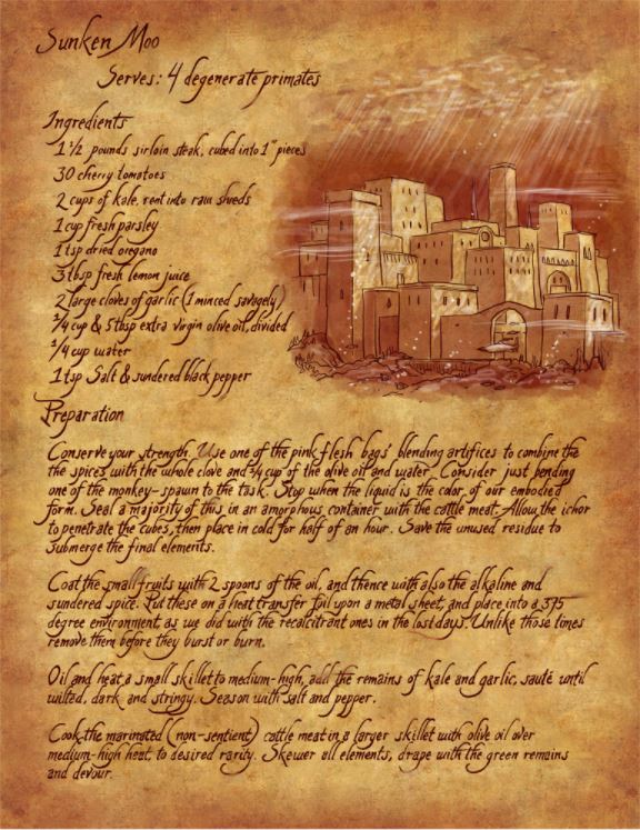 A Lovecraft-inspired cookbook with recipes to whet your appetite and threaten your sanity Reading about the slime- covered, non- Euclidean ruins of the sunken city of R’lyeh or the squamous, tentacled deity who slumbers there would make anyone hungry. Starting with the puns and working from there, author Mike Slater and head chef Thomas Roache have summoned forth 50 funny, bizarre, and horrible dishes such as: