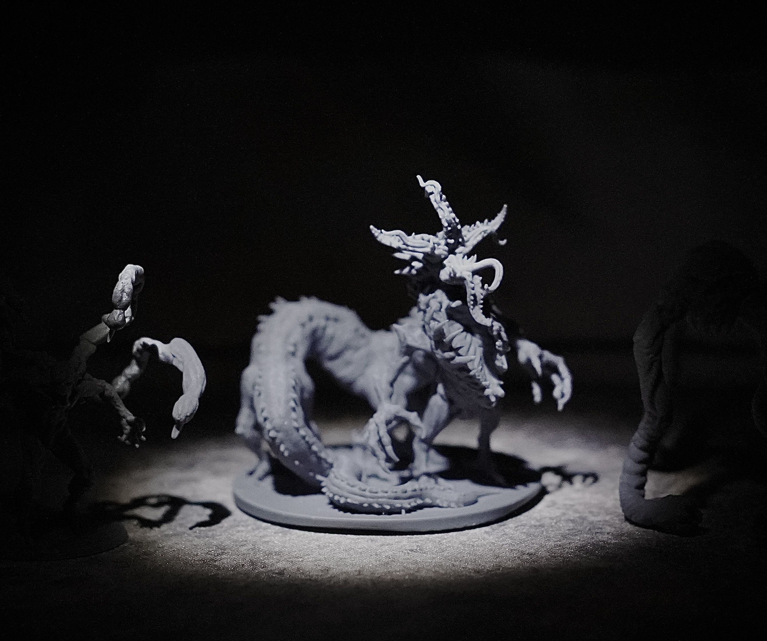 The Vulk is a shadowy predator with senses that let it operate in total darkness, stepping in and out of reality to feed its serpentine form and endless hunger for slaughter. Meant as a challenge for one PC, they also can travel in packs, and left unchecked can grow into Dire Vulks or even the gigantic Vulk Colossus.